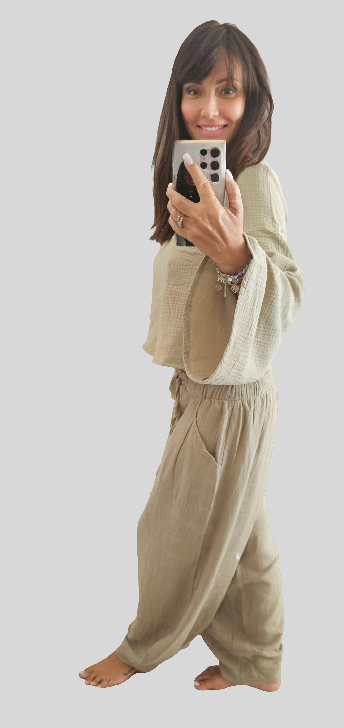 Perfektně ladí s našimi balónovými kalhotami – můžete ho nosit v tónu v tónu nebo si hrát s kontrasty a vybírat z různých barevných kombinací. Styl i komfort na jedničku!
