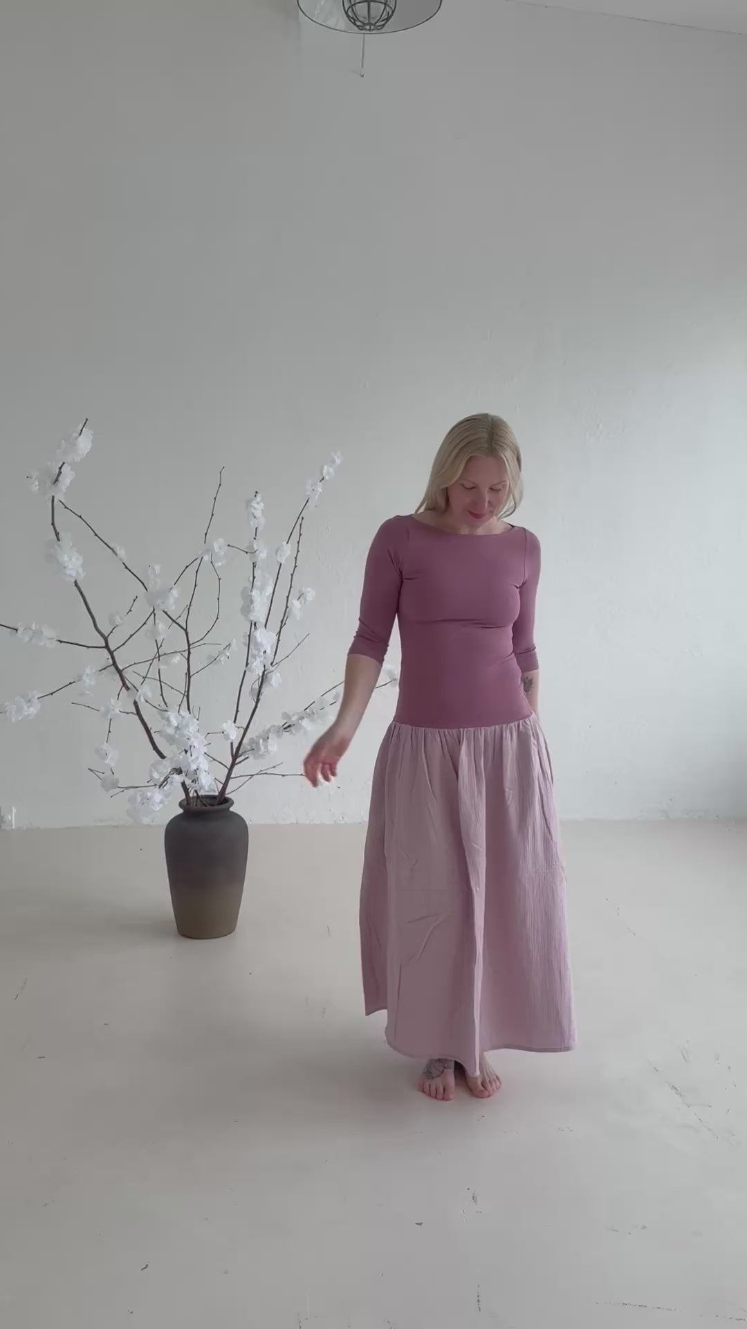 Elegantní i hravé, přesně takové jsou naše šaty Amade – kombinace pružného úpletu a lehké mušelínové sukně s kapsami, kterou si zamilujete na první oblečení. Horní část s 3/4 rukávem je z měkkého, příjemného úpletu a podšitá , takže krásně sedí a neprosvítá . Sukně z mušelínu se nese v duchu ženství a volnosti, a díky maxi délce působí stylově a nadčasově.
